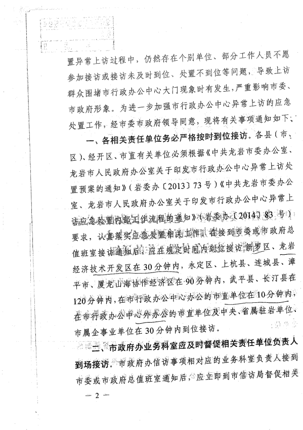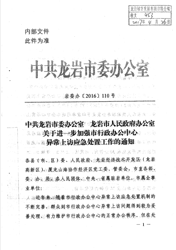 市委辦關(guān)于進一步加強市行政辦公中心異常上訪應急處置工作的通知(巖委辦【2017】110號)