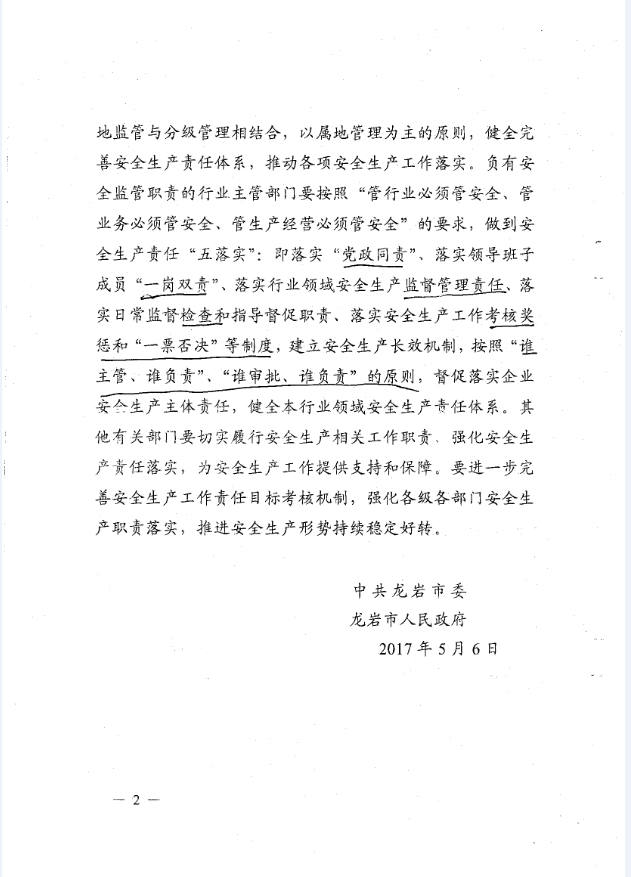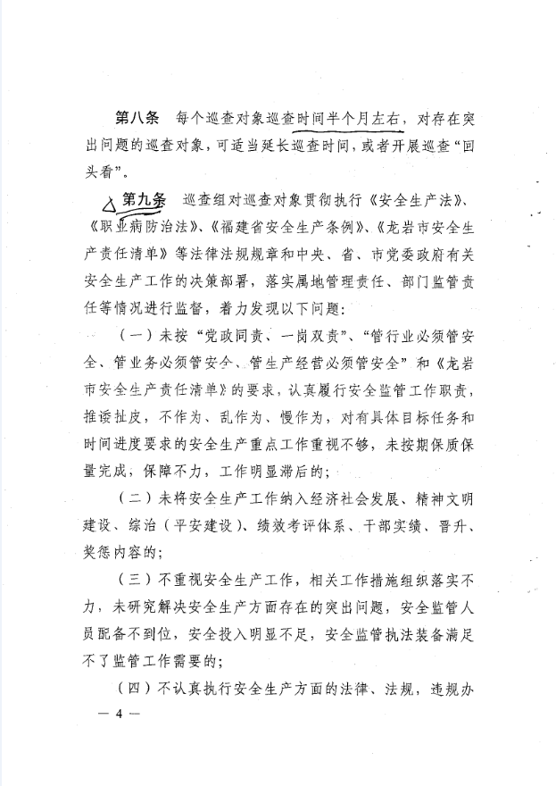 龍巖市安全生產(chǎn)責(zé)任清單及安全生產(chǎn)巡查工作辦法(巖委【2017】45)